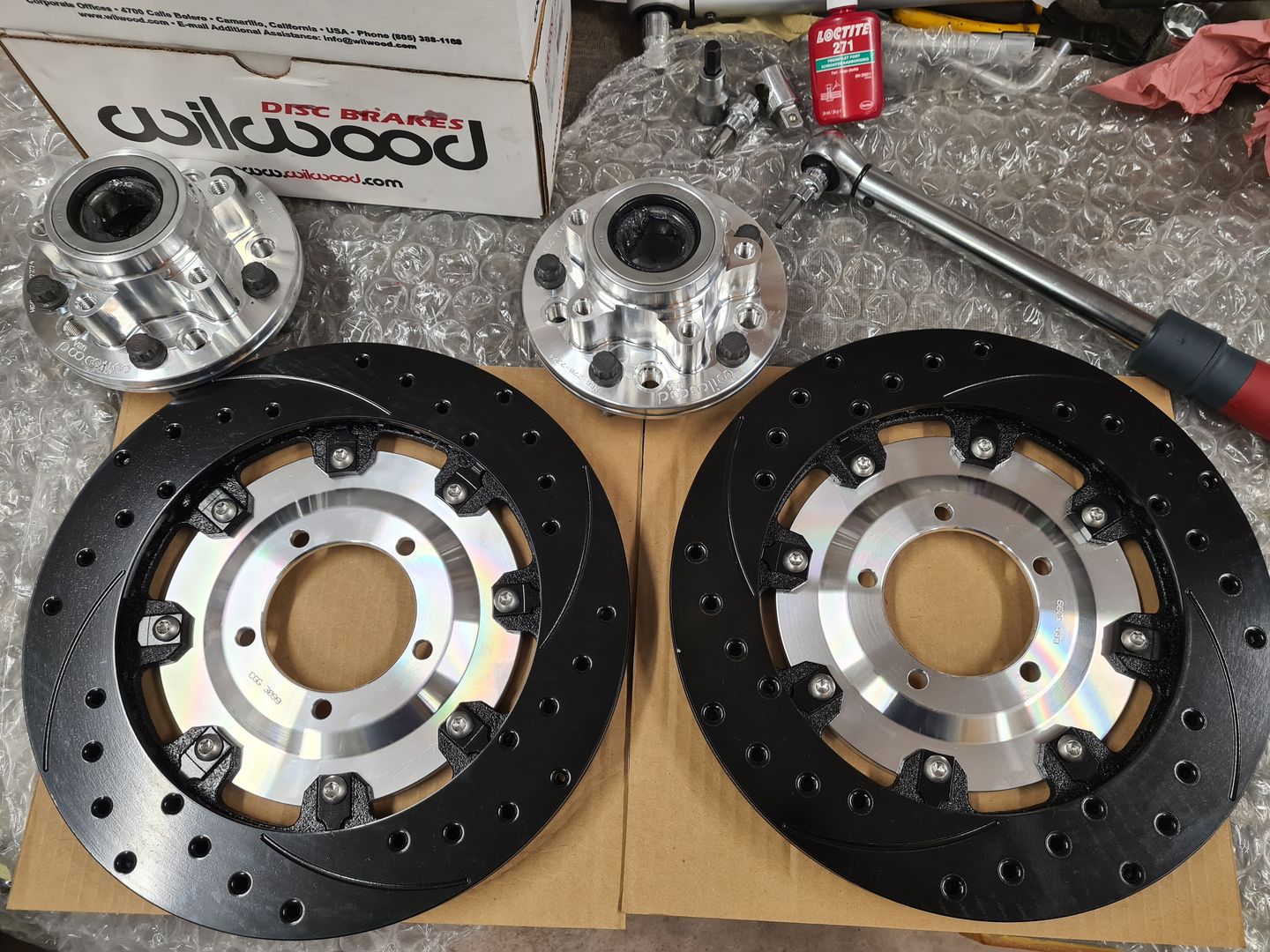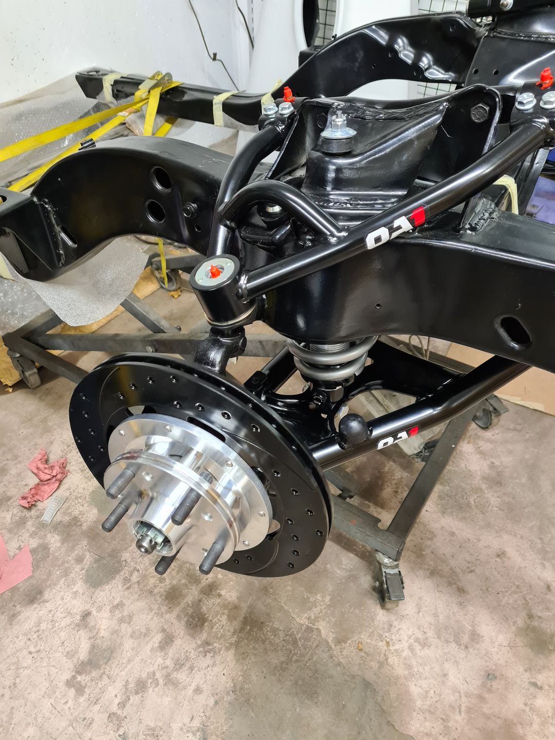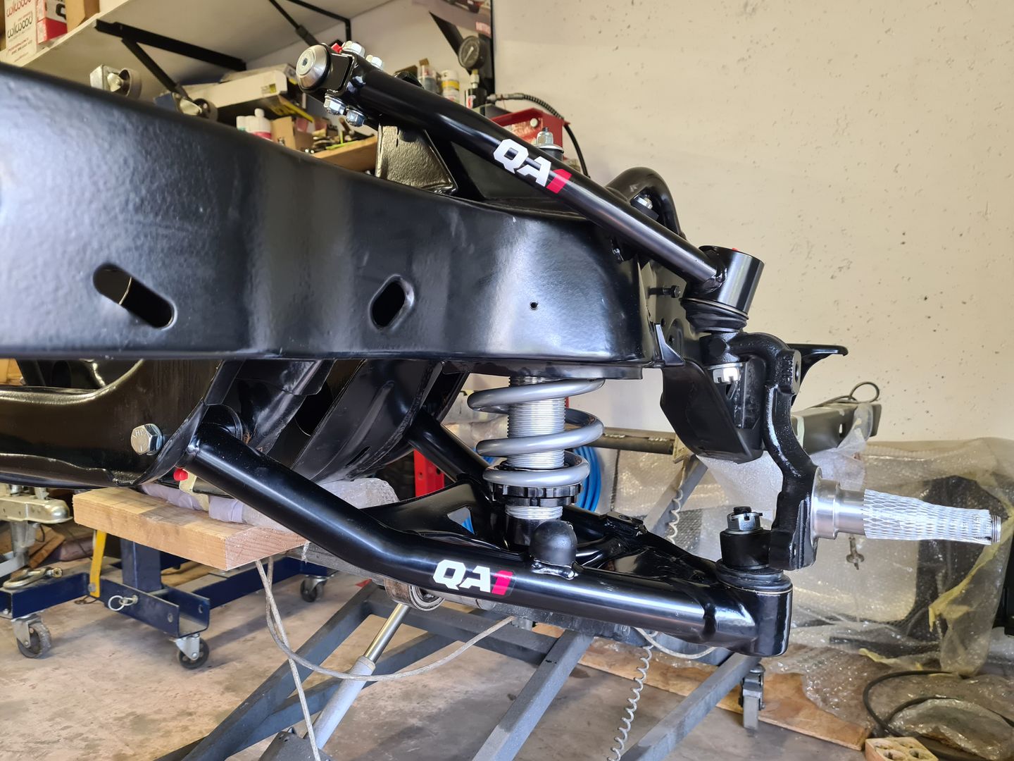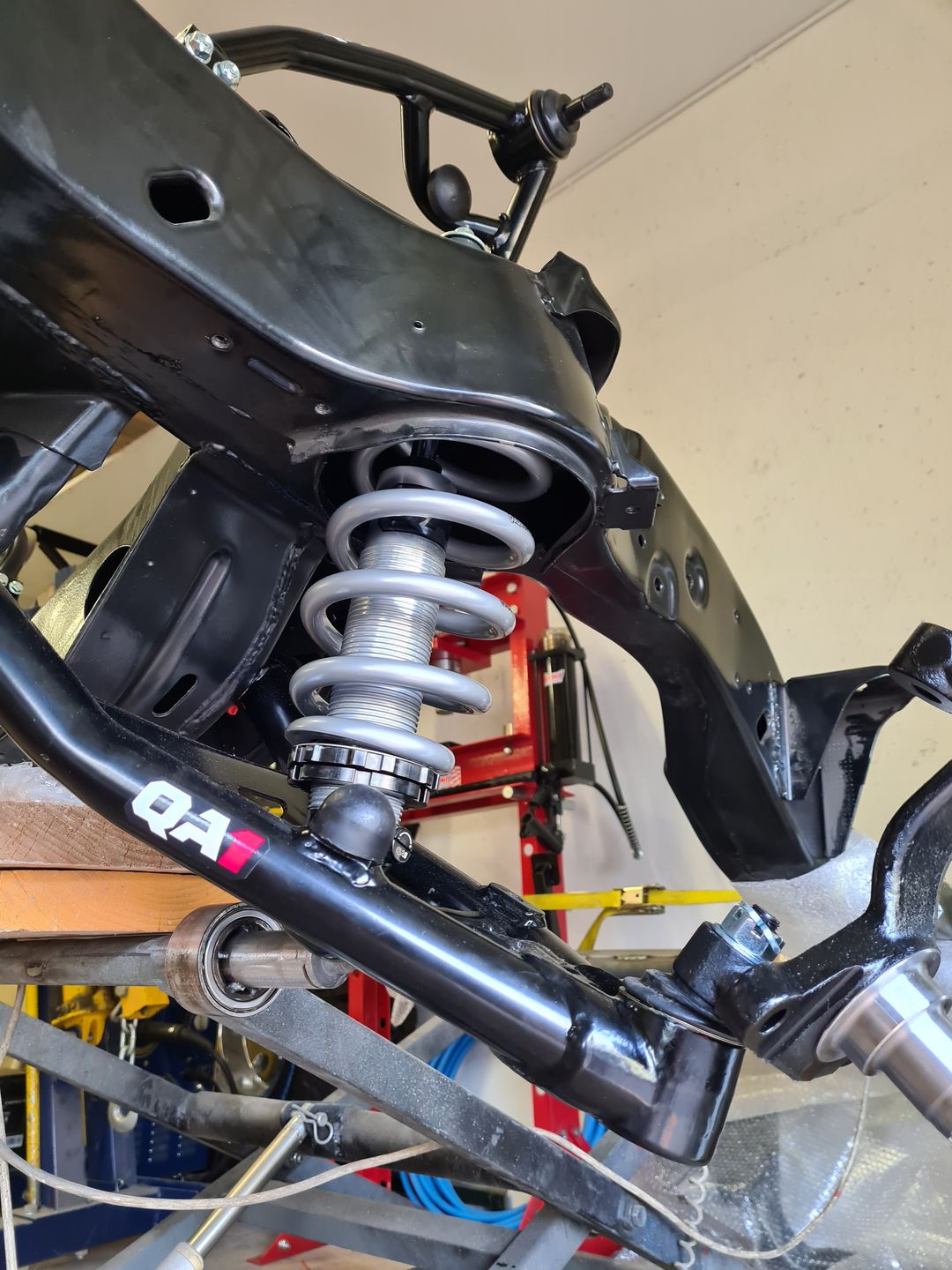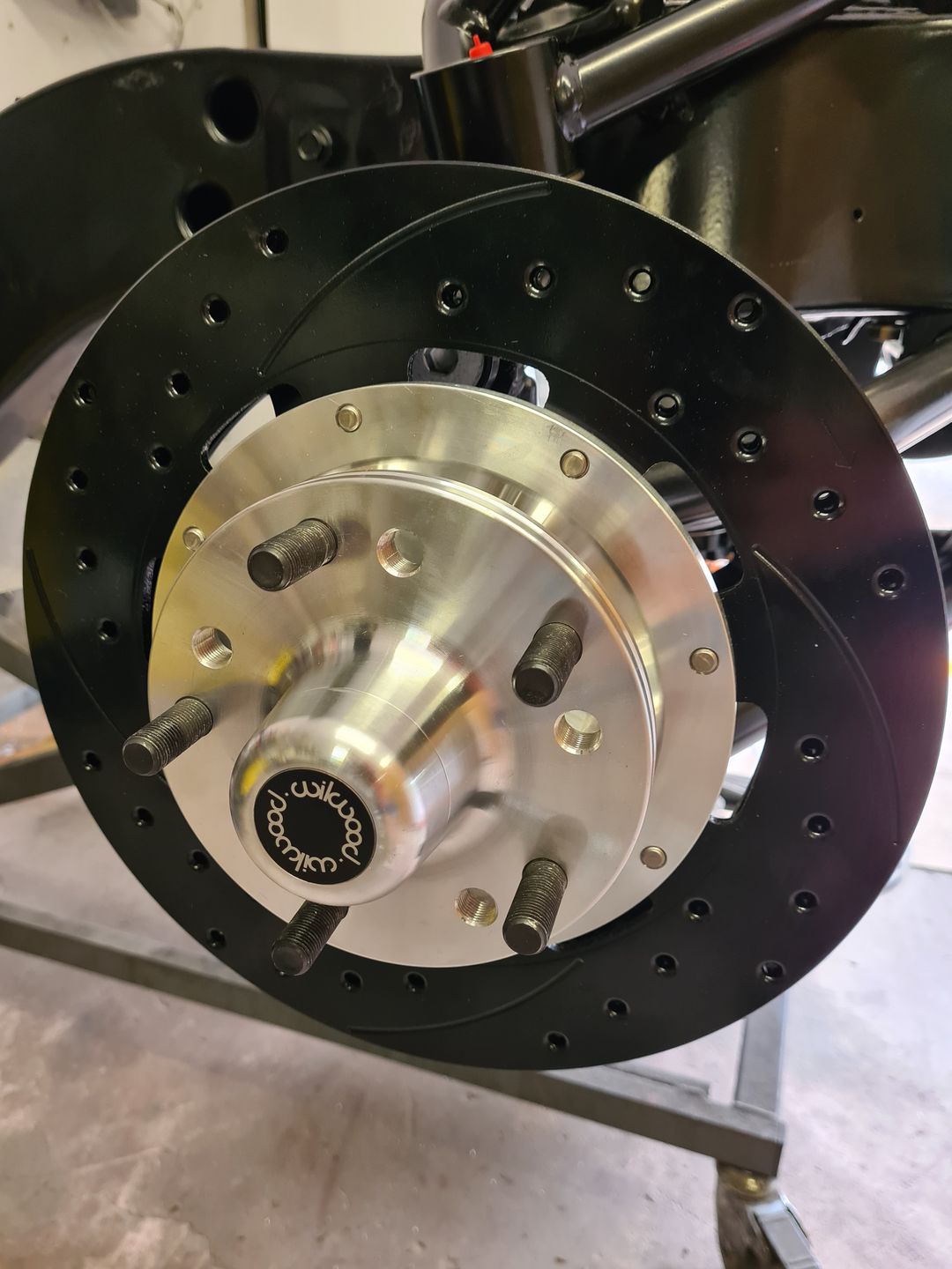 Ci-dessous l’installation du kit disque Wilwood 6 pistons à l’avant et combiné QA1 réglable en compression. Je ne vous cache pas que c’est vraiment agréable de monter du beau matos comme celui-là et neuf, que du bonheur! L’installation est sans grande difficulté sauf peut-être pour compresser les combinés afin de raccorder le bras supérieur à la fusée de roue mais avec un peu de patience et de système « D » on y arrive. Pour le reste il faut suivre soigneusement les instructions et serrage de couple.