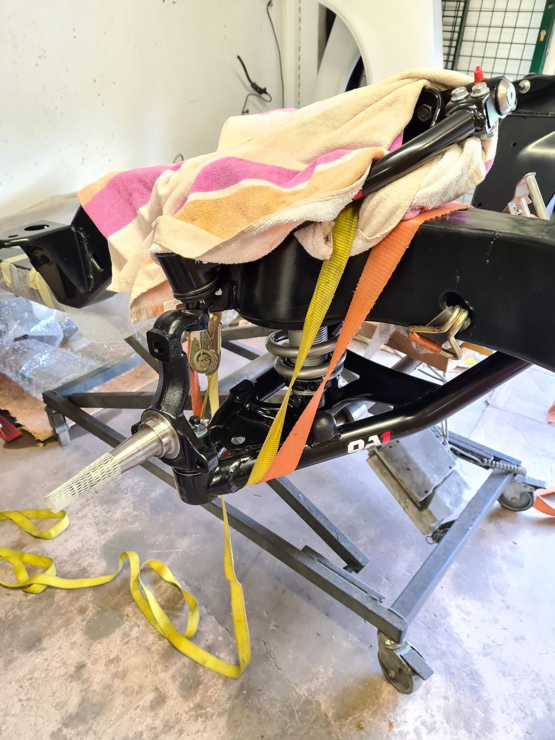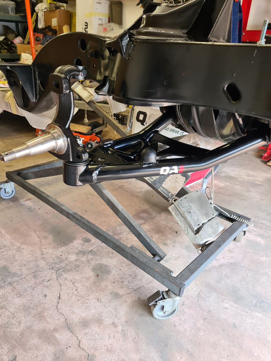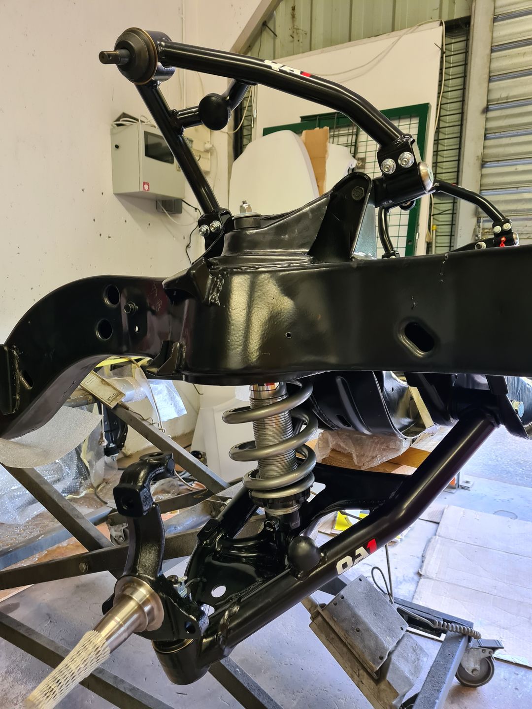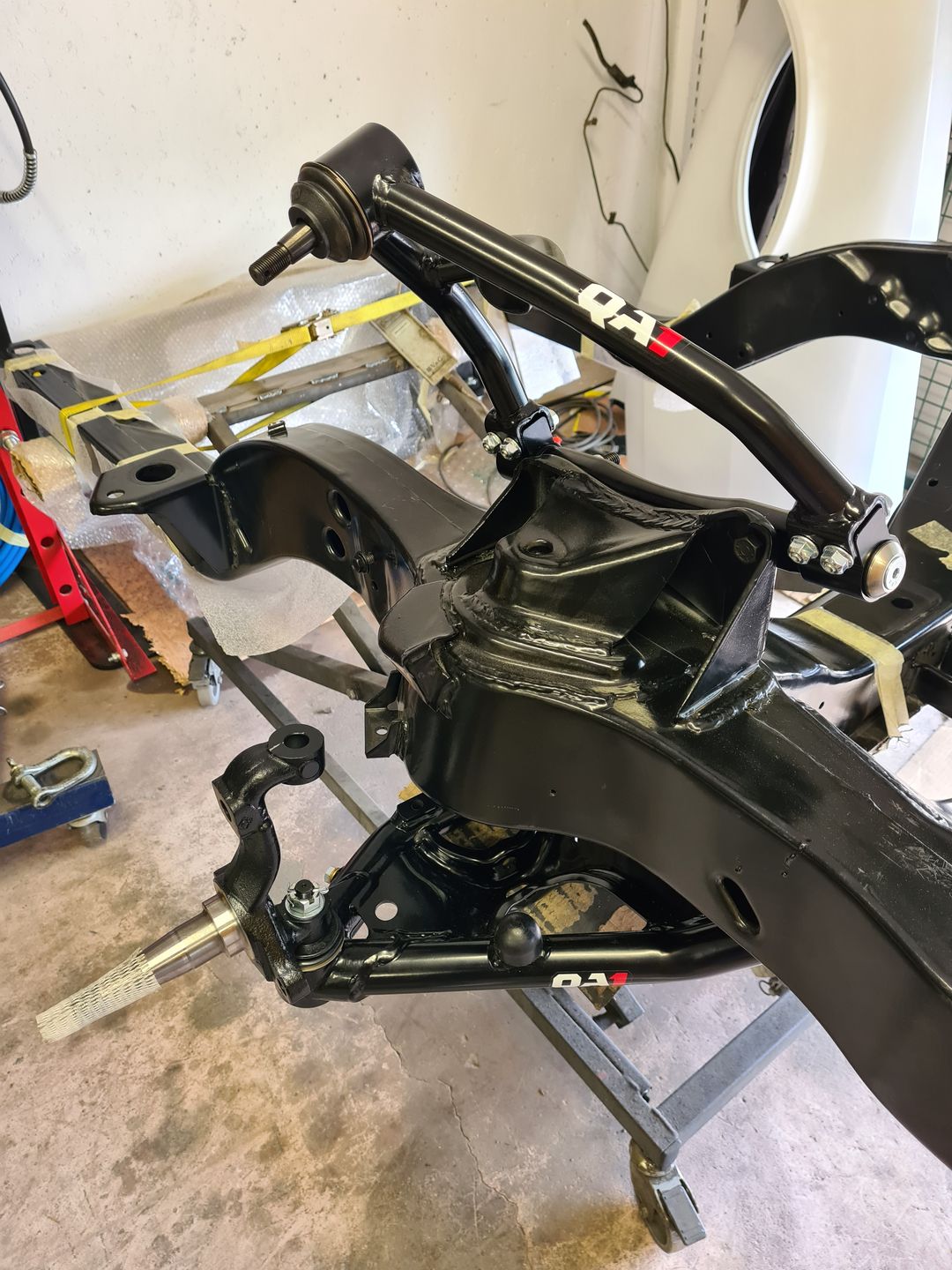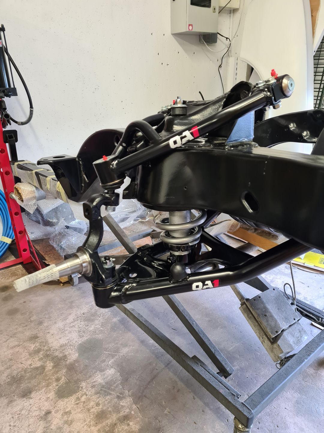Ci-dessous l’installation du kit disque Wilwood 6 pistons à l’avant et combiné QA1 réglable en compression. Je ne vous cache pas que c’est vraiment agréable de monter du beau matos comme celui-là et neuf, que du bonheur! L’installation est sans grande difficulté sauf peut-être pour compresser les combinés afin de raccorder le bras supérieur à la fusée de roue mais avec un peu de patience et de système « D » on y arrive. Pour le reste il faut suivre soigneusement les instructions et serrage de couple.