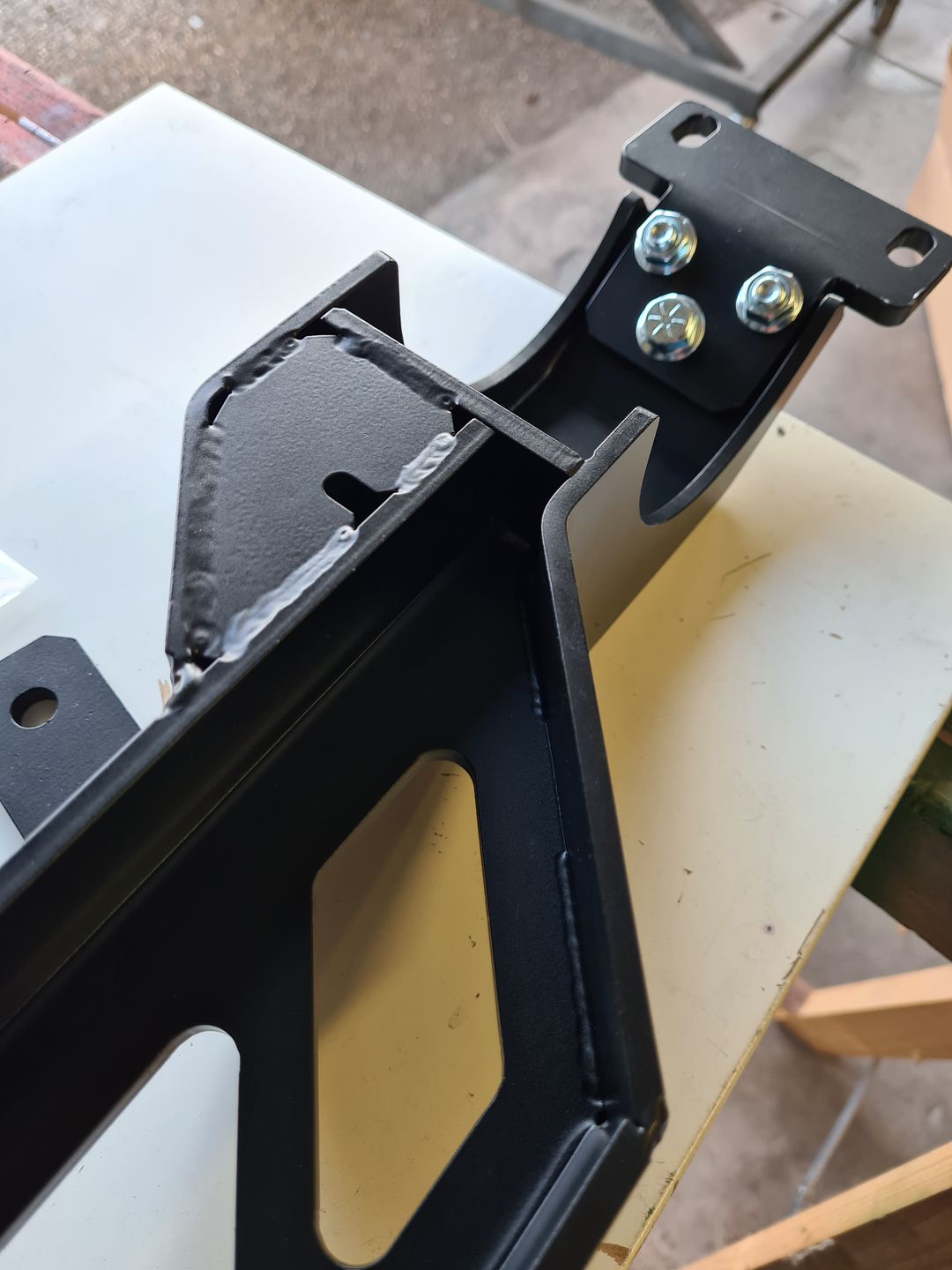 Ha! enfin! J’attendais cela depuis très longtemps, l’installation du moteur sur le demi-châssis afin dans un premier temps de s’assurer que celui-ci ne touche pas le tablier ou d’autres parties et sans surprise tout est en ordre on peut donc passer à la suite.