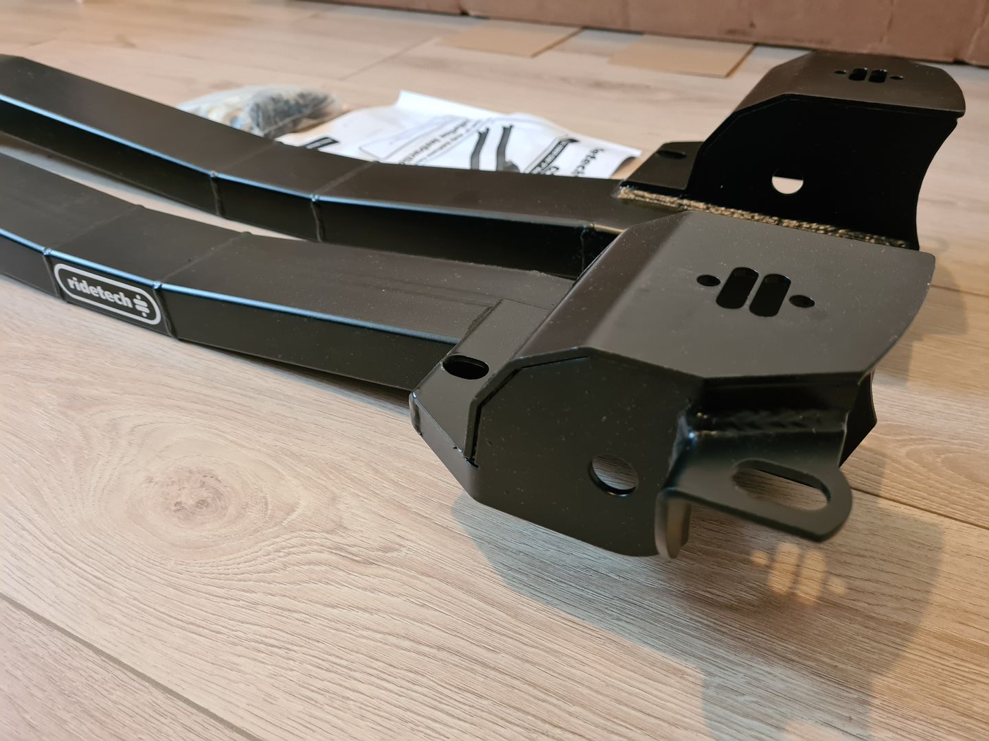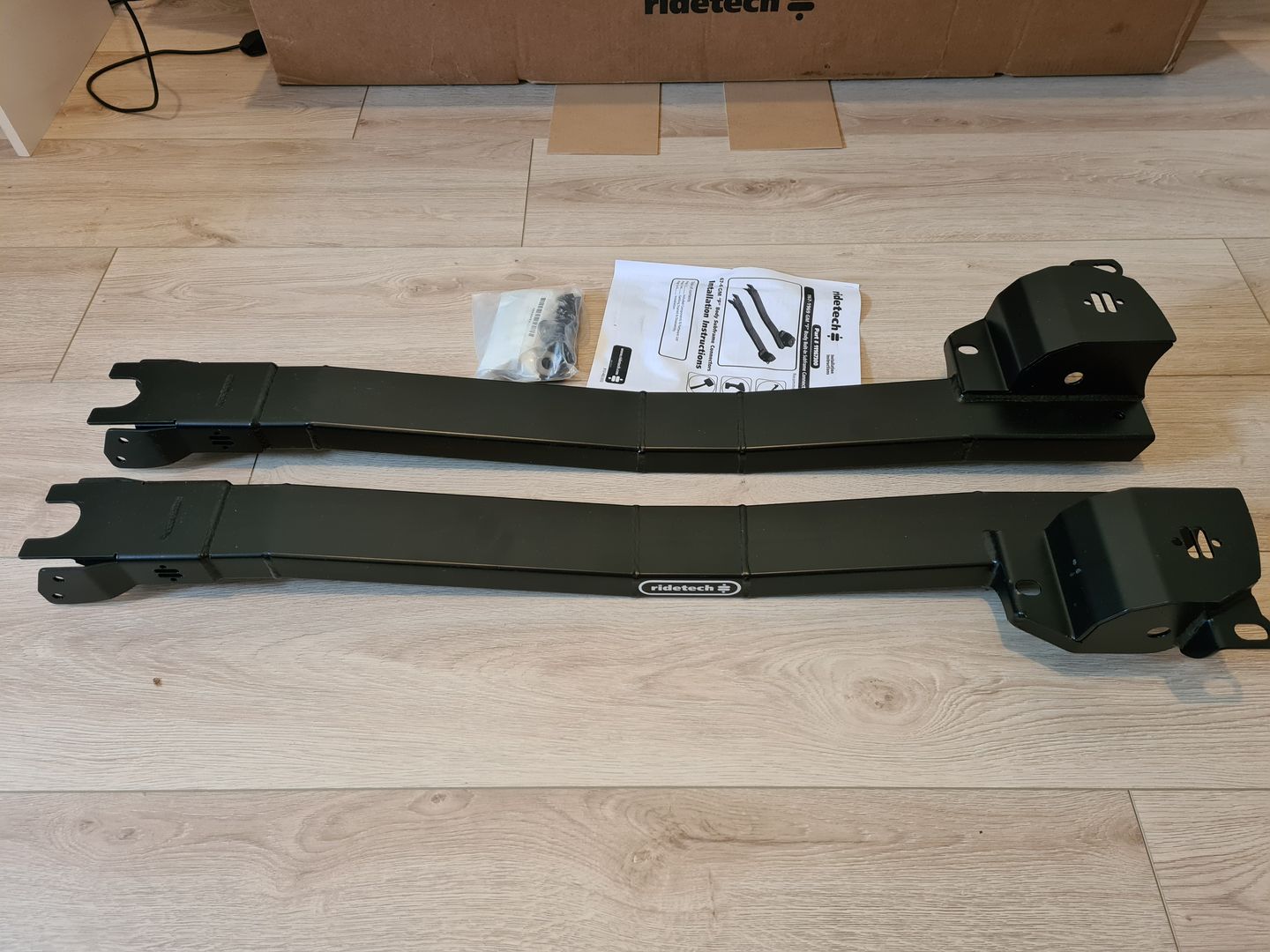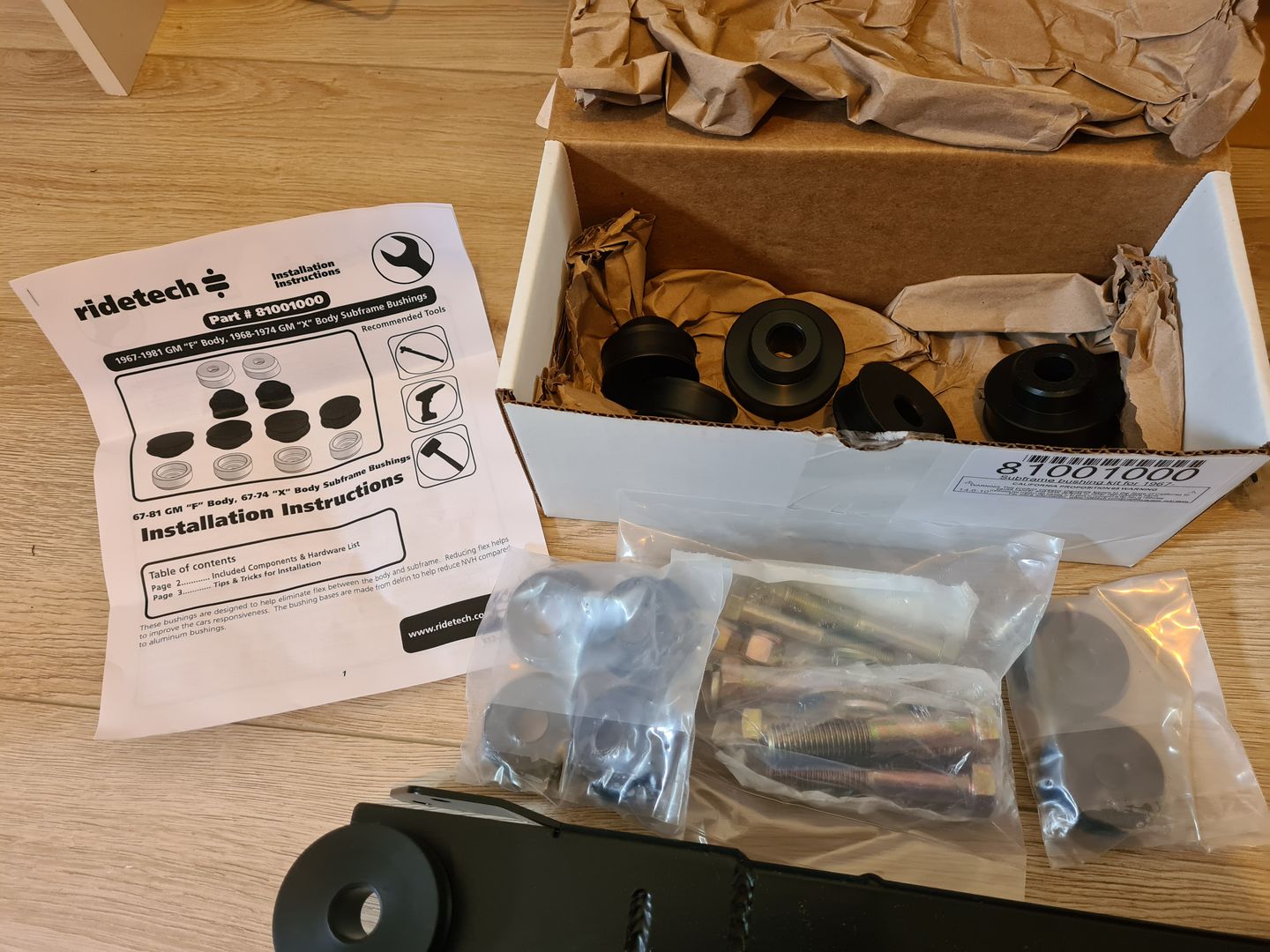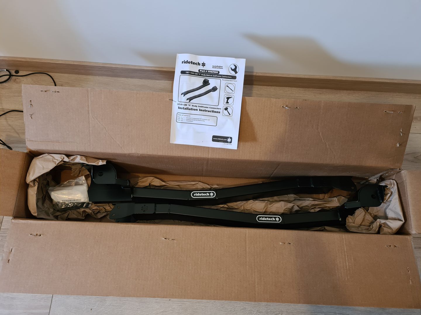 Commençons par un achat qui date de l’année dernière avec l’achat d’un kit RideTech Subframe Connectors qui permettra de rigidifier la caisse en solidarisant le châssis avant à la partie arrière. J’en ai profité pour acheter également le kit silentbloc de la même marque.
