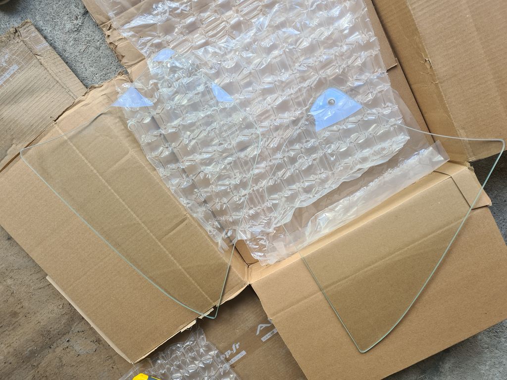 Cette fois-ci j’ai commandé toutes les vitres, j’avais déjà racheté le pare-brise au tout début du projet car je l’avais cassé en le démontant, mais pour le reste je me tâtais. Au final, et comme beaucoup d’autres pièces, je ne peux remettre les vitres d’origines car elles sont rayées pour certaines voir sur les bords très abimés, et puis cela va dénoter avec le reste de la voiture. Autre pièce commandé, le kit câble de frein à main en Inox s’il vous plait!