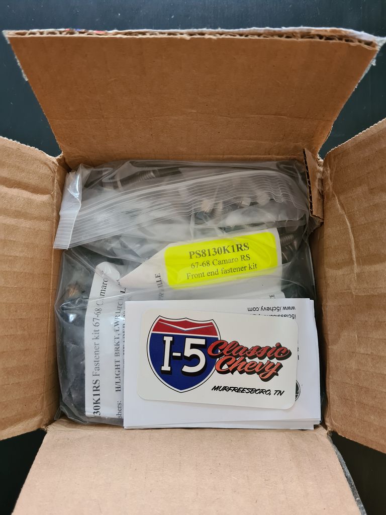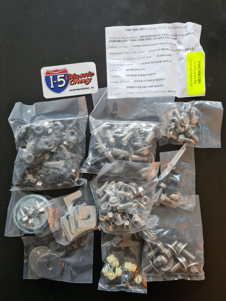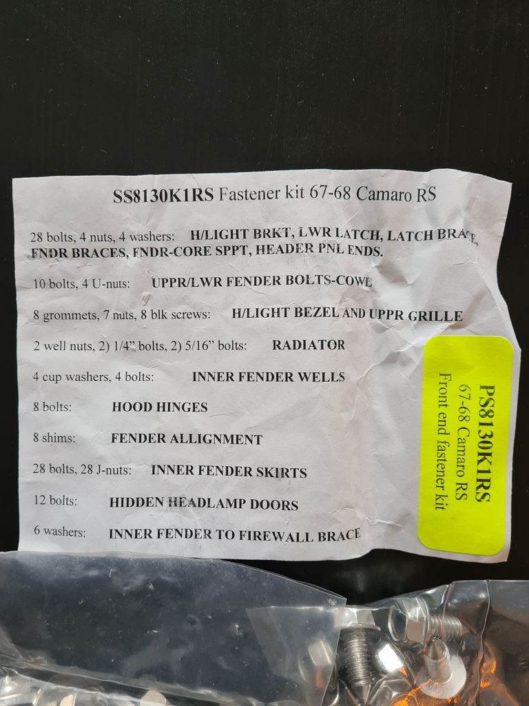 Après réflexion je me suis donc décidé à commander le kit proposé par AMD (Auto Metal Direct) qui au final est composé de pièces provenant de chez « Classic Headquarters ». Le kit reprend le montage d’origine et s’adaptera parfaitement notamment avec le kit électrique acheté lui aussi neuf. Il est à noter que j’ai hésité avant d’aller vers ce kit car il en existe d’autre mais celui-ci reste le plus simple surtout s’il tombe en panne un jour. Autre achat fait depuis un moment et sur EBAY mais que je n’avais pas encore présenté, c’est un kit visserie tout Inox pour le remontage de la face avant. Avec ce kit complet plus de risque de rouille et vu qu’il me manquait des boulons c’est parfait.