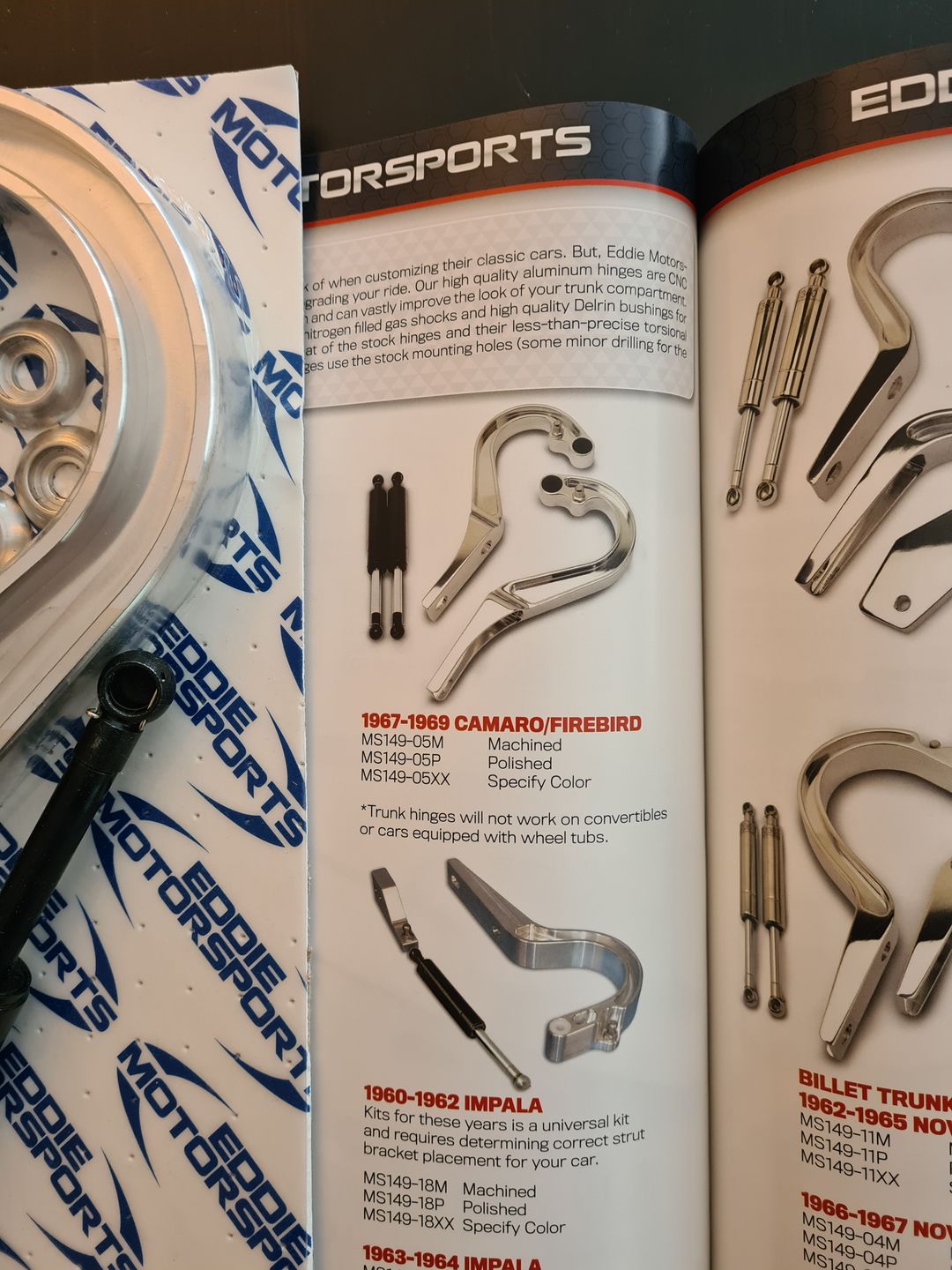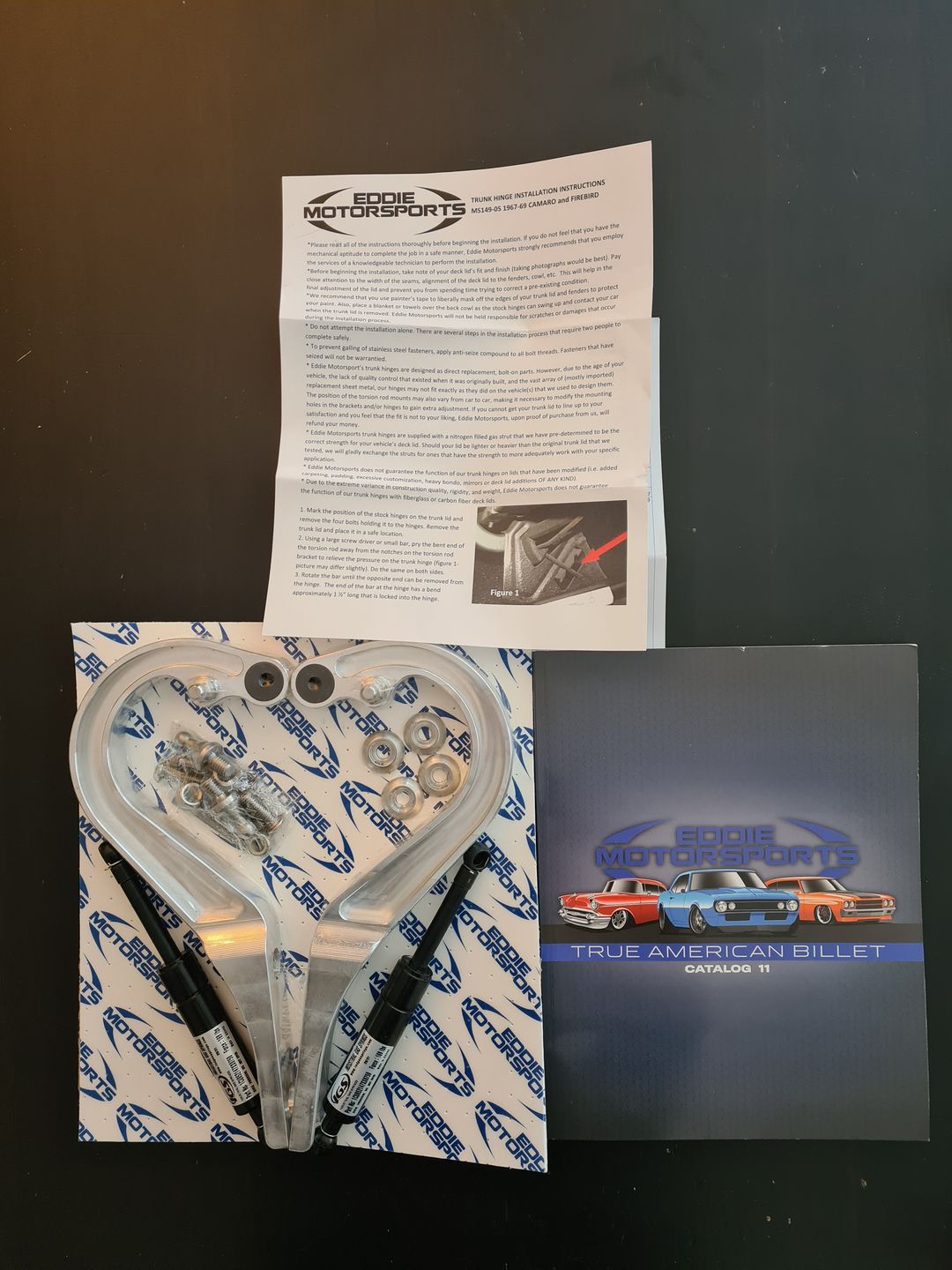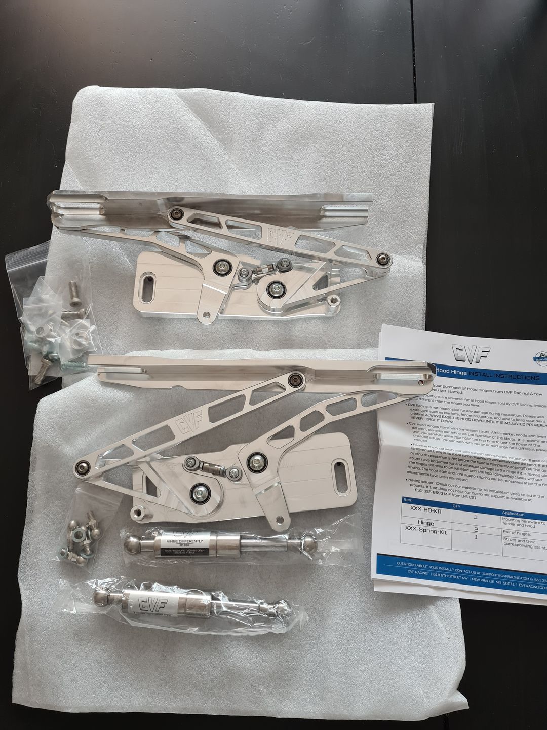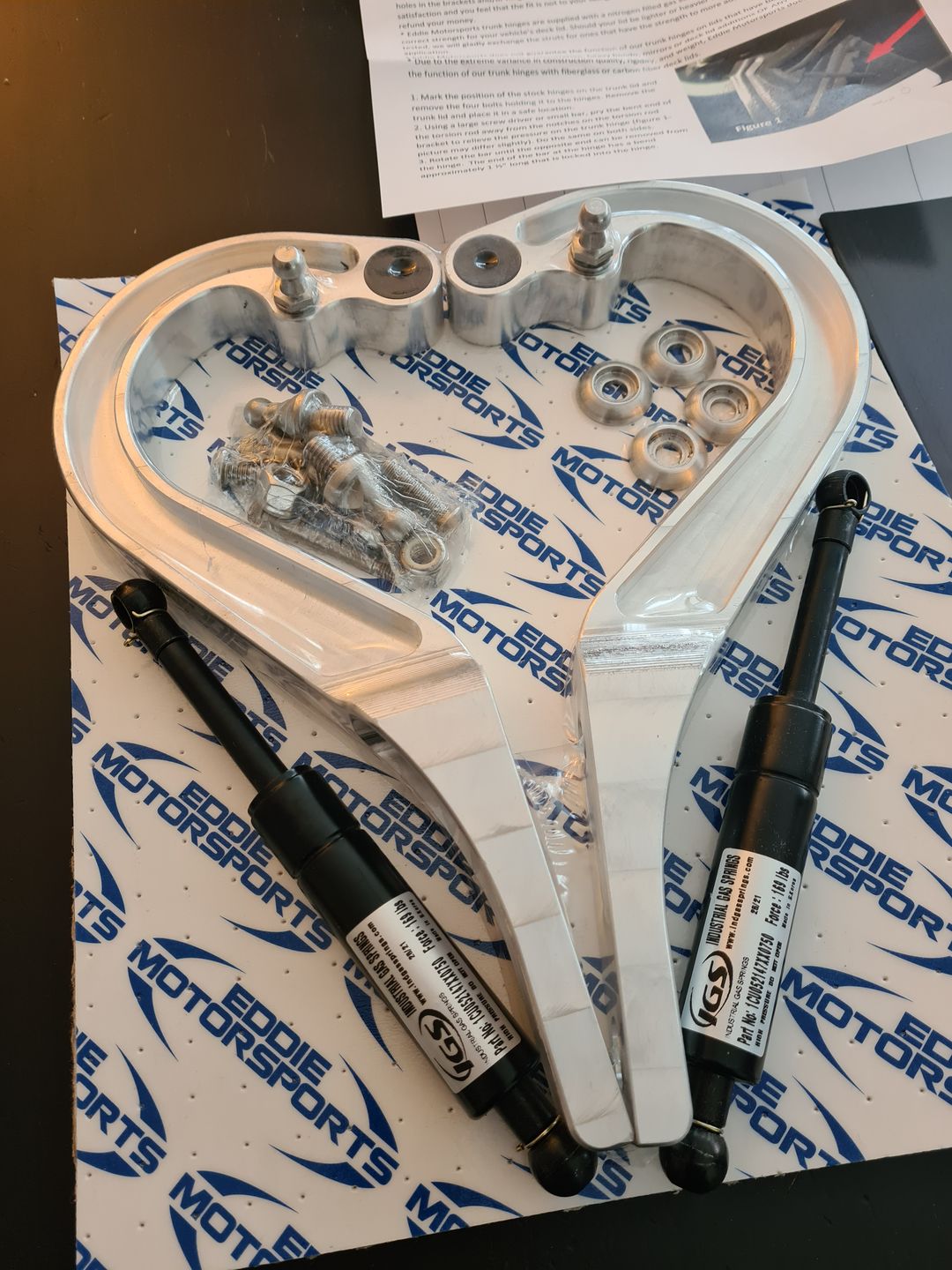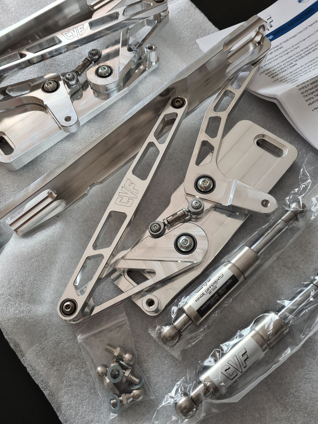 Pour le coffre en revanche CVF n’en fait pas encore j’ai donc acheté ces charnières chez eddiemotorsports.com et là encore c’est de l’excellente qualité. Attention quand même au temps de fabrication, j’ai dû attendre 2 mois et relancer 3 fois car ils n’ont pas de stock.