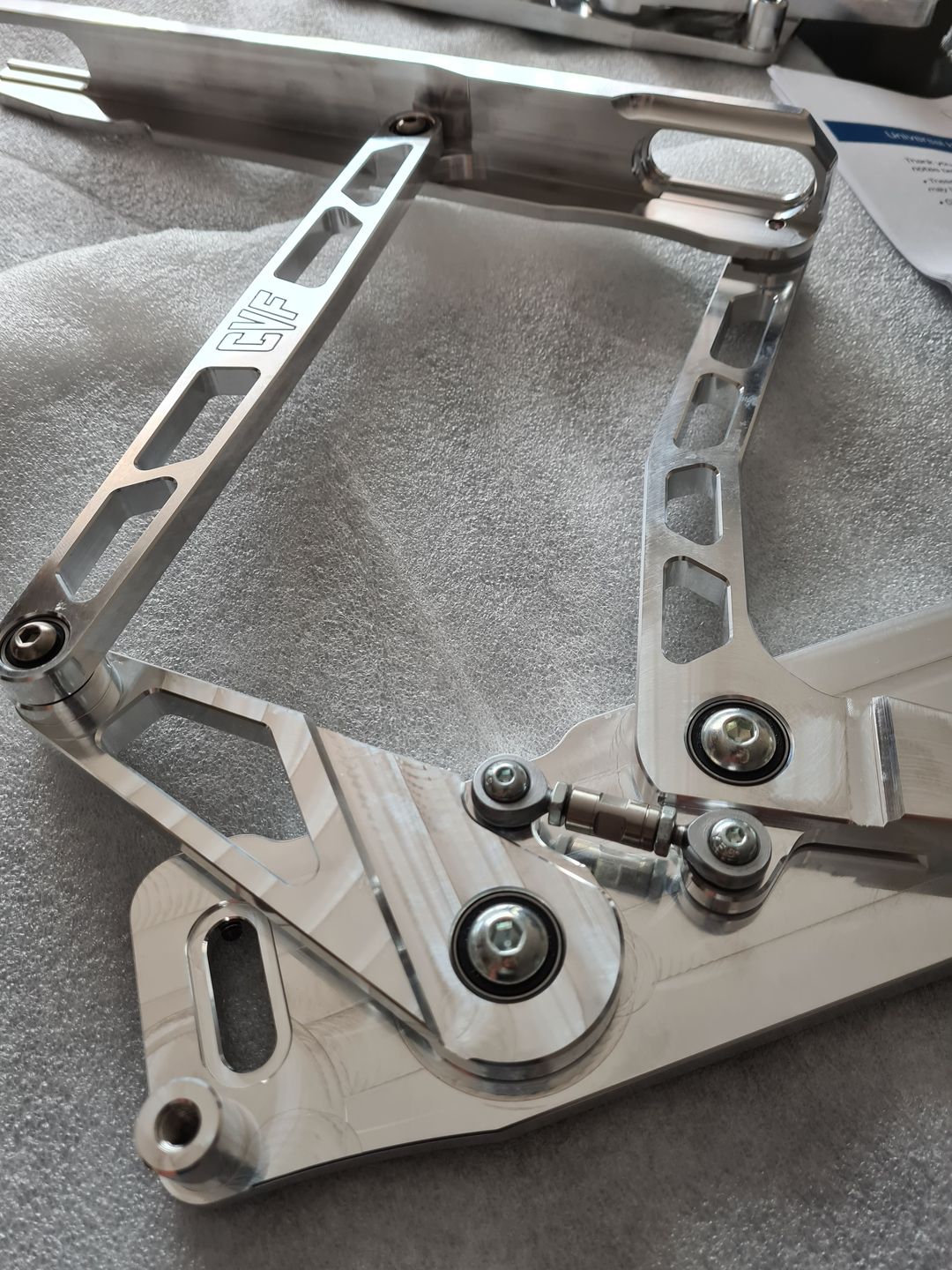 Maintenant qu’elle marque choisir? On trouve deux grandes enseignes qui en fabriquent, les ultras connus Righbrothers (ringbrothers.com) et Eddiemotorsports (eddiemotorsports.com) pour ne pas les citer. Le premier je vous laisse voir le tarif, c’est vraiment abusé et ils jouent en partie sur leur notoriété; le second est plus correct niveau tarif mais l’aspect est moins sympa je trouve donc que faire… ? humm et s’il existait une autre marque qui en fabriquait? Et bien oui, et cette maque c’est CVF Racing (www.cvfracing.com) et je peux vous dire que le design est de mon point de vue bien plus stylisé que les deux autres, le système est plus réfléchi au niveau des réglages (sur 6 axes) et avec une ristourne de 140$ comment ne pas succomber et faire chauffer la carte!
