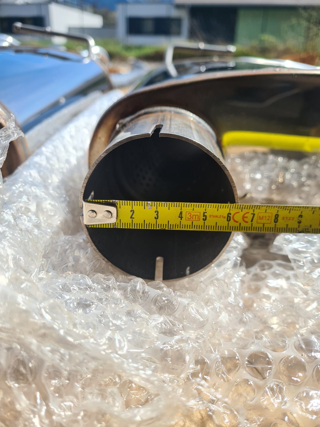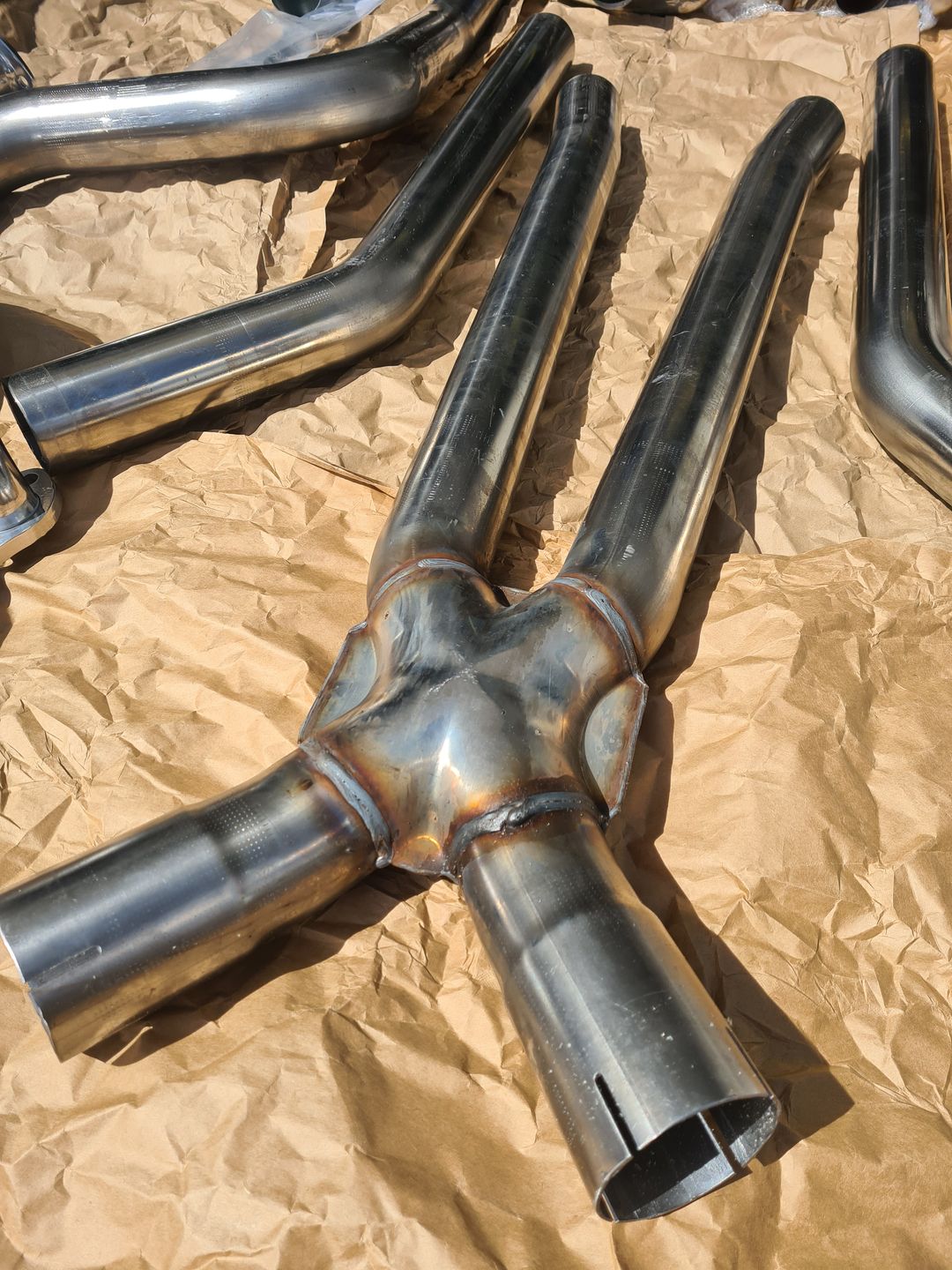 Premièrement je voulais de l’inox, ensuite le diamètre du tube devait être en 2.5″ extérieur (65.4mm) et sur ce point je suis resté cohérent avec la motorisation que j’ai, car prendre du 3″ de diamètre pour env 360cv ne sert strictement à rien, voir cela a un effet inverse sur les performances. Pour un son et des performances optimums j’ai opté pour un tube secondaire appelé X-pipe, ce nom est le fait que les tubes se croisent mais il existe aussi le H-pipe qui relie les deux tubes par un plus petit et perpendiculaire. Je vous laisserai voir la différence entre ces deux formes et comment cela influe sur les performances et le son, d’autres sites l’expliqueront bien mieux que moi cela. Jusque-là les autres marques me direz-vous auront cette configuration à quelque chose près, mais au niveau des silencieux, Magnaflow a fait la différence, car même si ma Camaro ne servira que très peu je ne veux pas d’un son trop important pour ne pas avoir un mal de crâne au bout de 10km. Vous trouverez sur le Net des comparaisons des sonorités de ces silencieux et celui-ci est pour moi le meilleurs compromis. Enfin la qualité des formes, soudures et finition de Magnaflow est dans le top 3 de ces marques à mon sens, mais je fignolerai tout de même au final en polissant le tout pour un effet miroir 😉