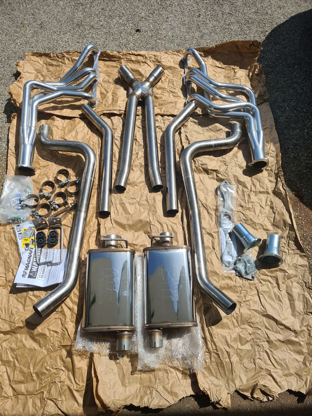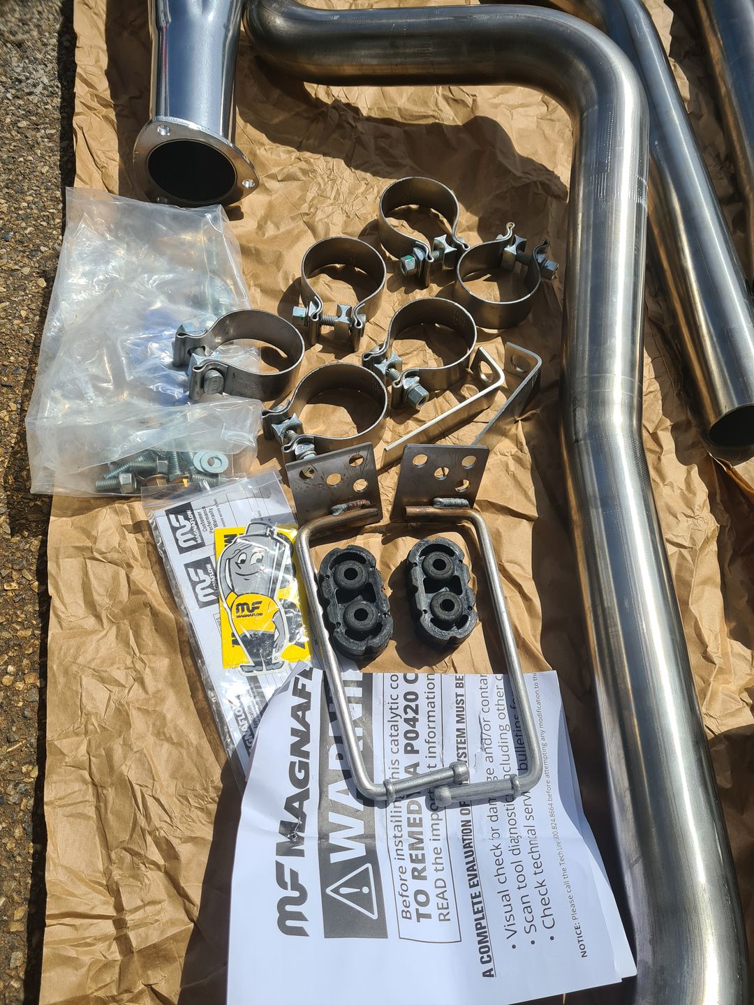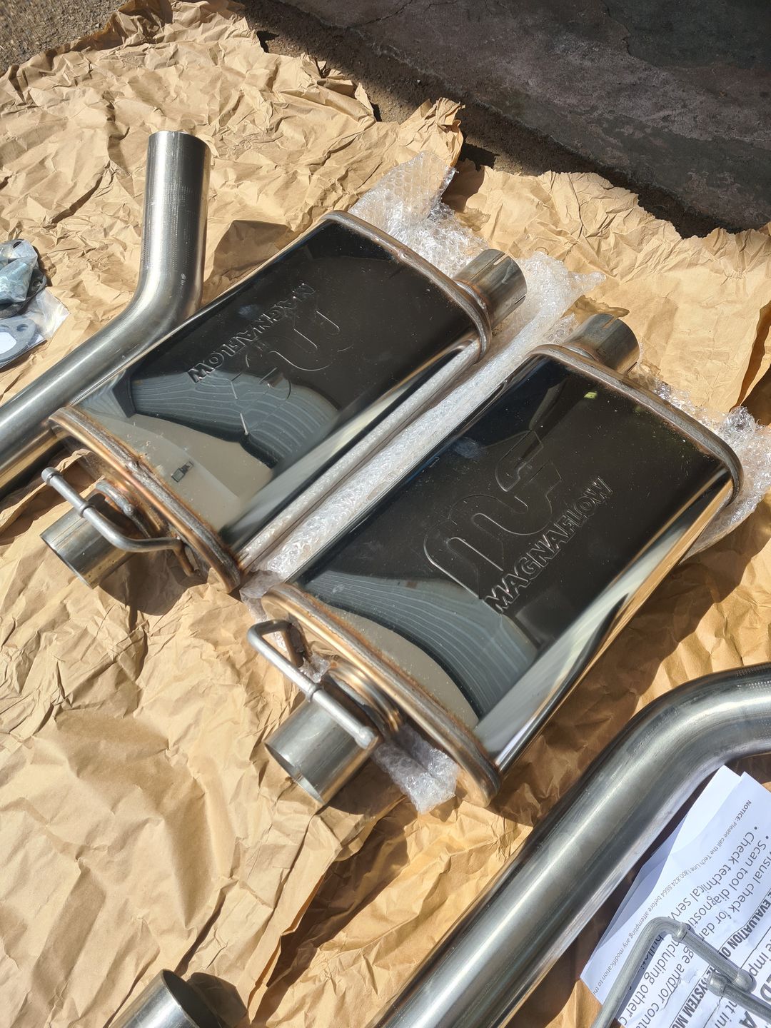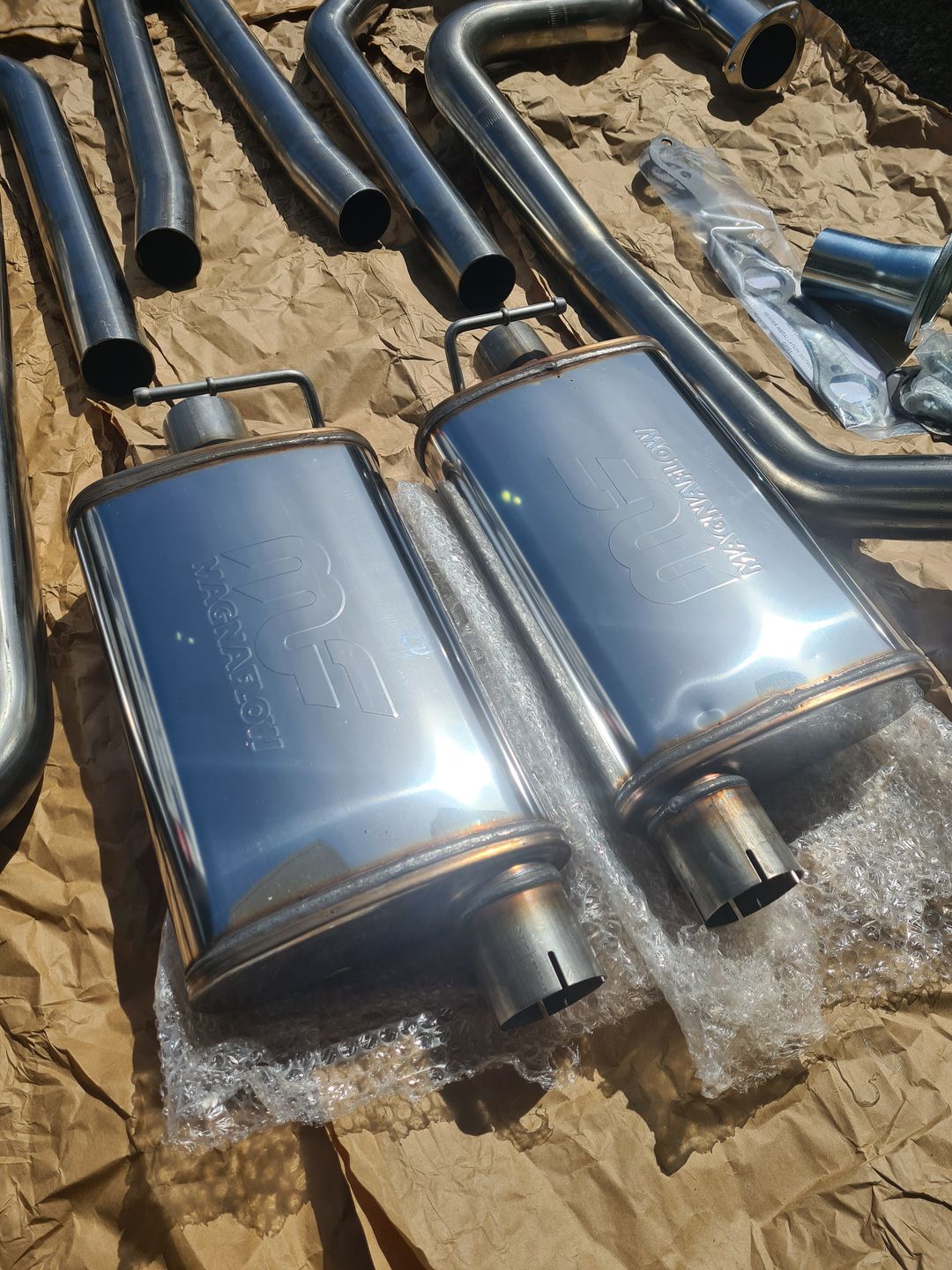 Pour ce qui est de la ligne d’échappement il a fallu faire un choix entre type de tube (acier ou inox), diamètre (2.5″ ou 3″), tube secondaire de forme H-PIPE ou X-PIPE, silencieux et bruit voulu et marque. Pas simple me direz-vous, mais après beaucoup de recherches et de doute aussi (surtout concernant le son et les dB) mon choix s’est porté sur le très connu fabricant « Magnaflow » et le kit complet référence « 15896 – Street Series Performance« . Pourquoi ce choix? Car il en existe d’autres très bons fabricants comme Flowmaster, Borla ou encore Venom .