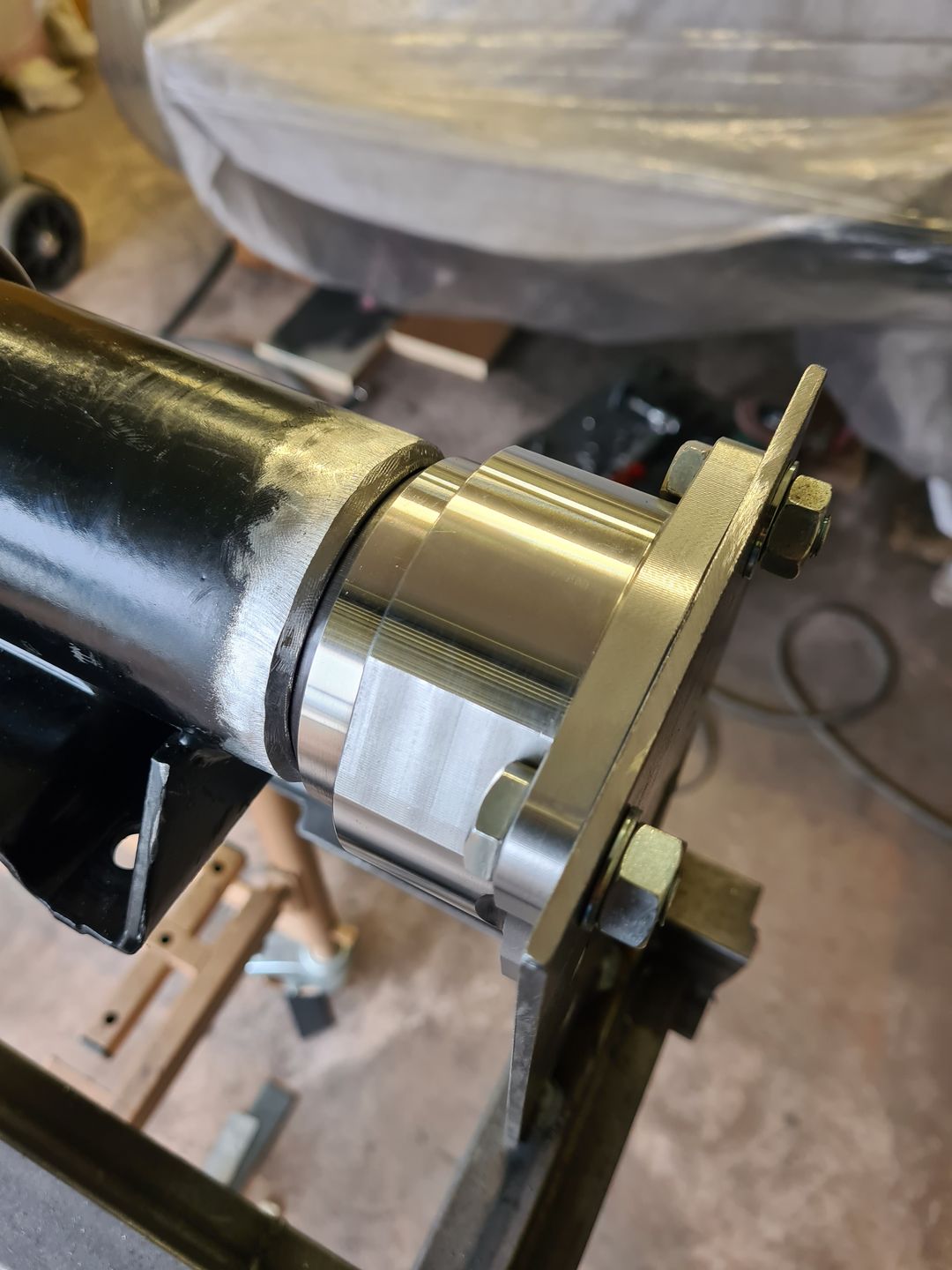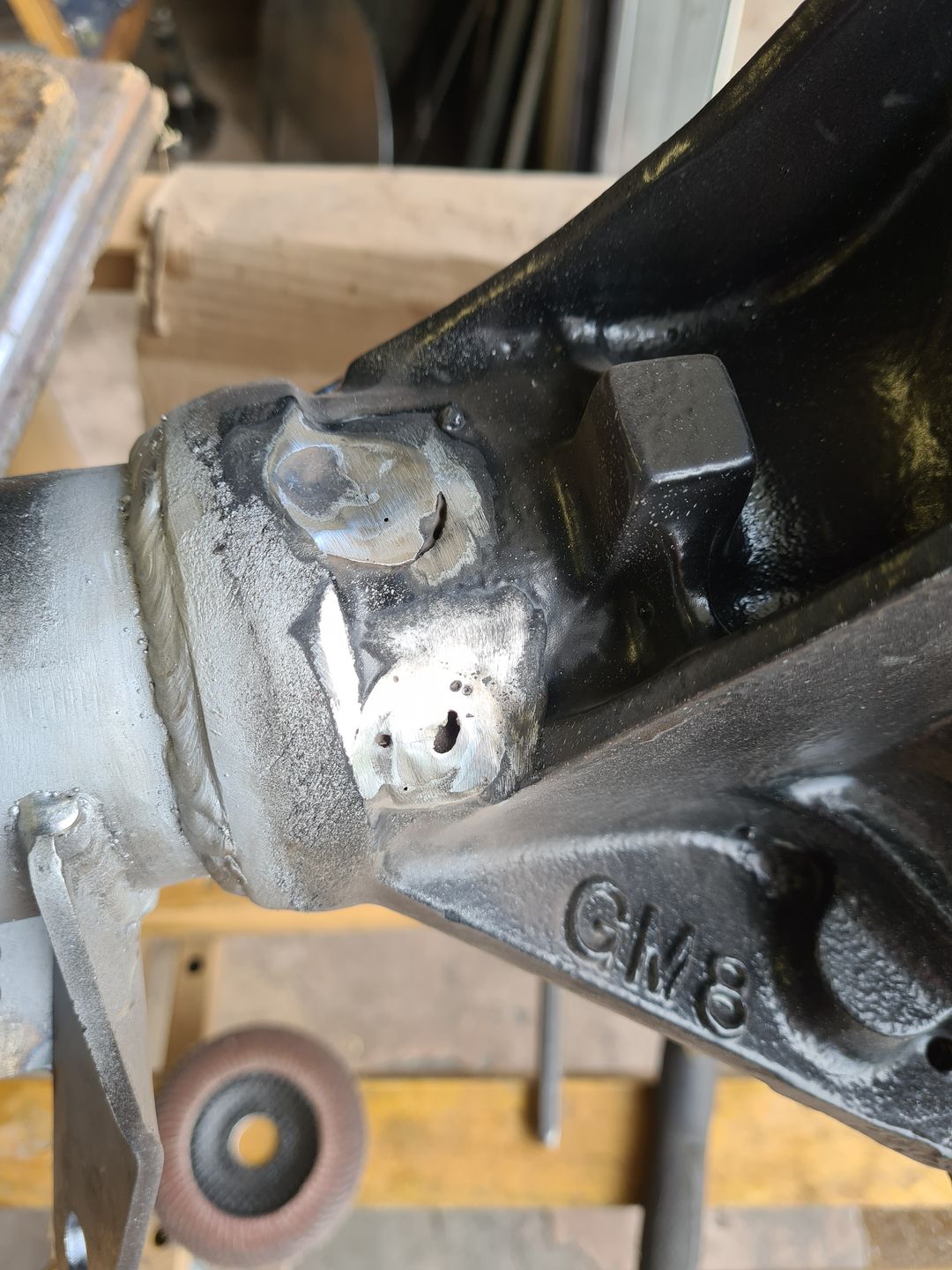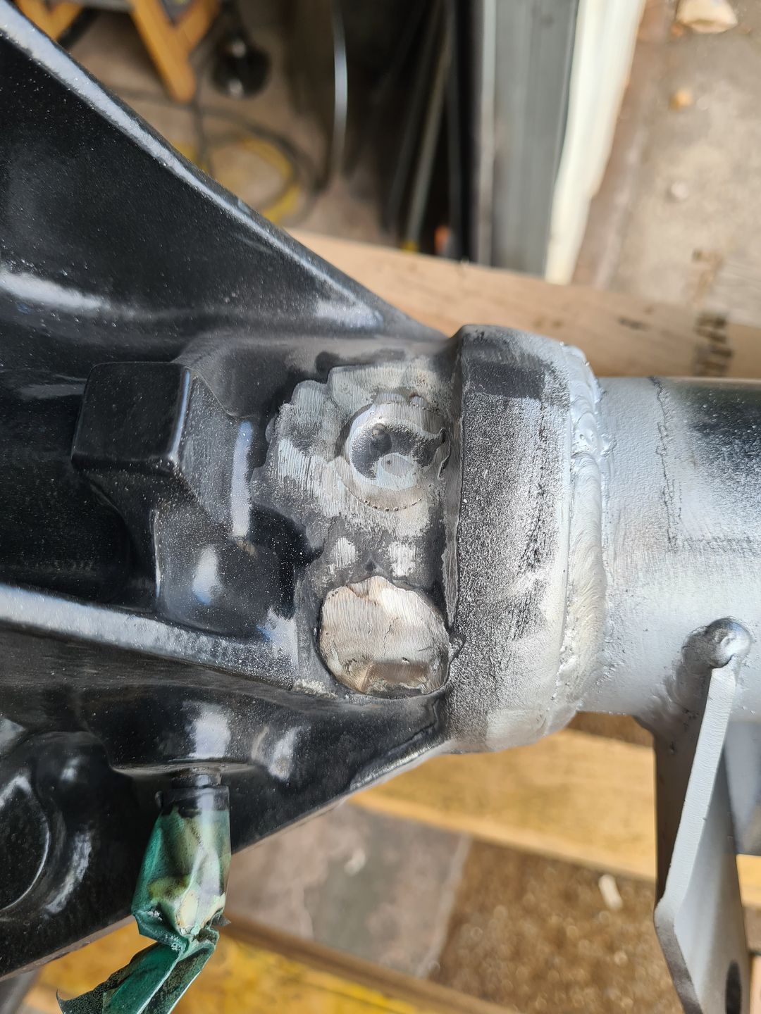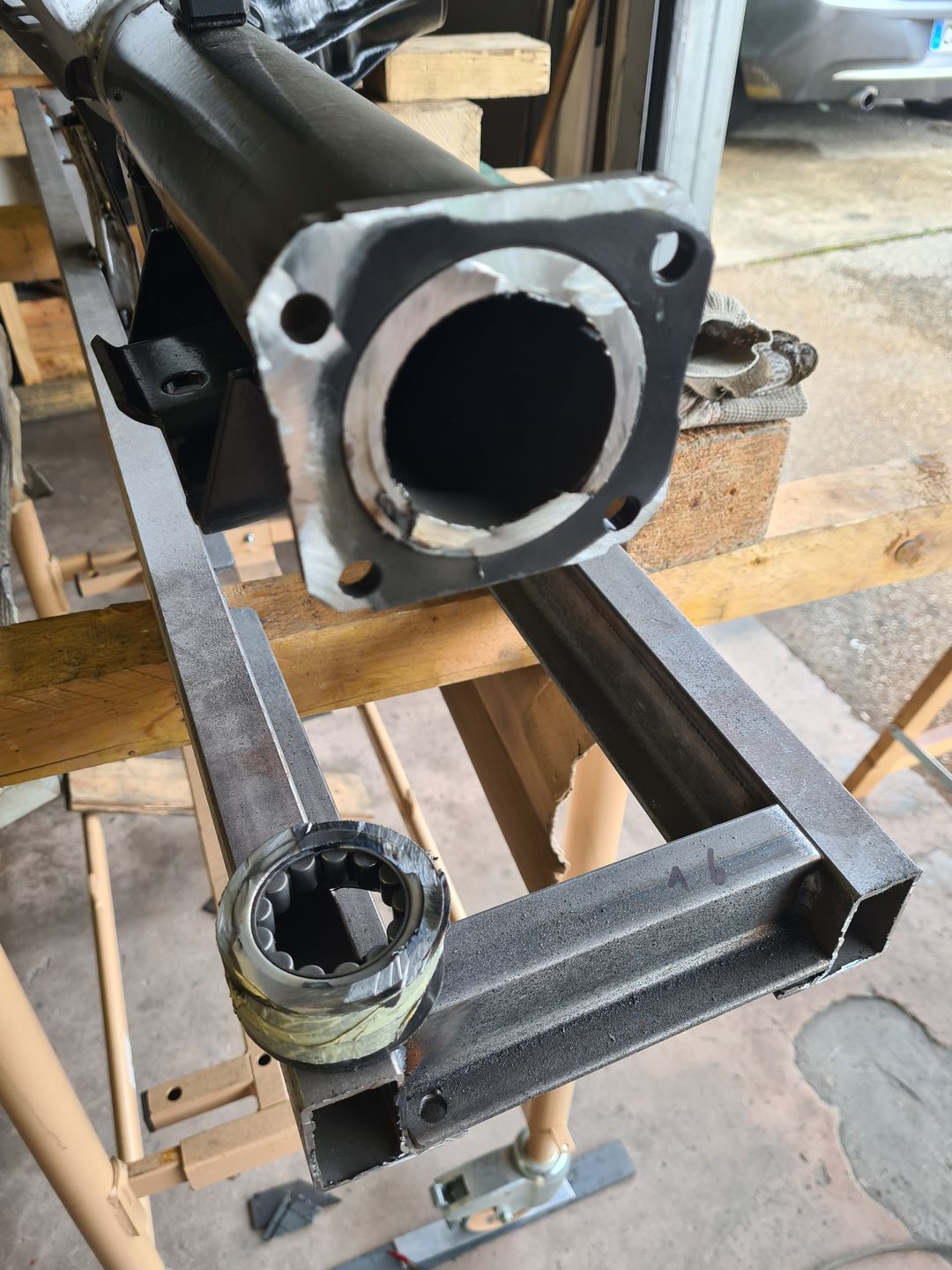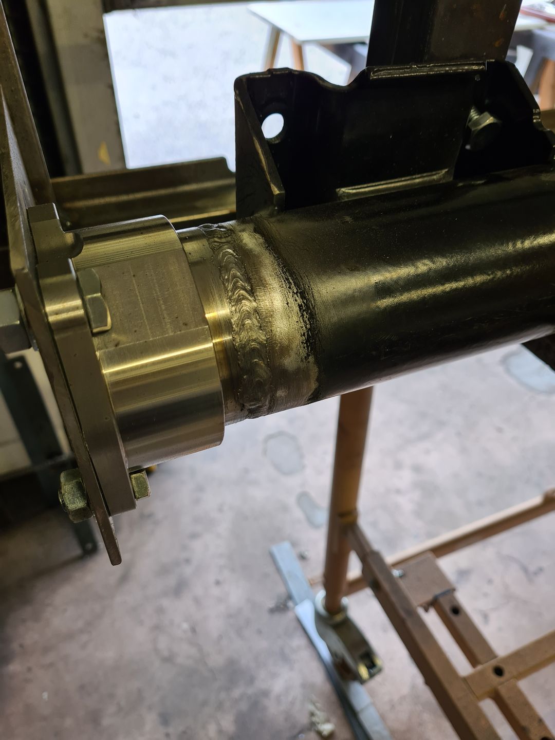 Une fois le nouveau support de roulement positionné on contrôle que tout est bien aligné et on pointe puis on soude le tout et c’est terminé. Si vous ne vous sentez pas de souder ces pièces ou vous n’avez pas confiance en vos soudures, je ne peux que vous conseiller de nouveau de faire appel à un pro!