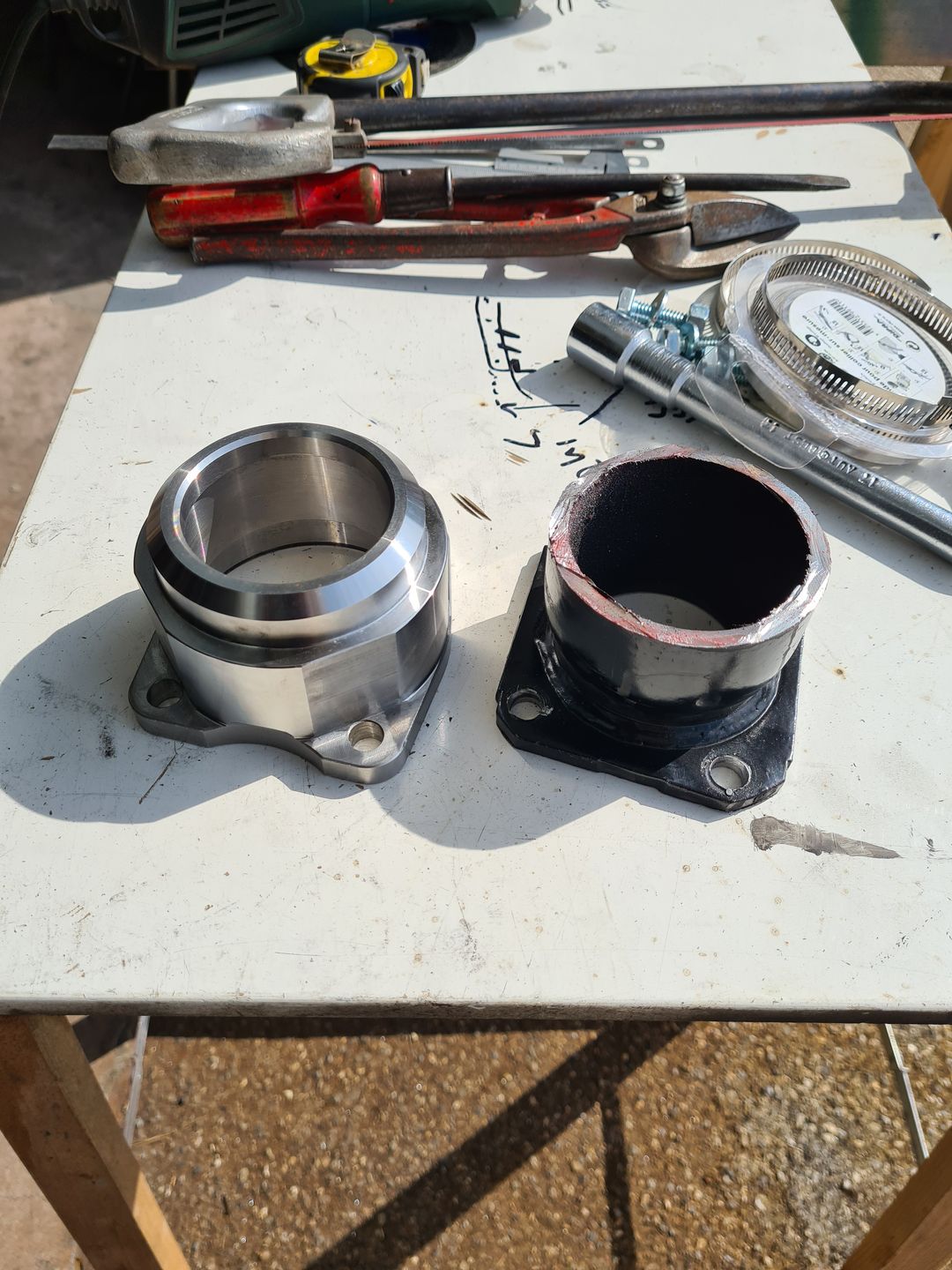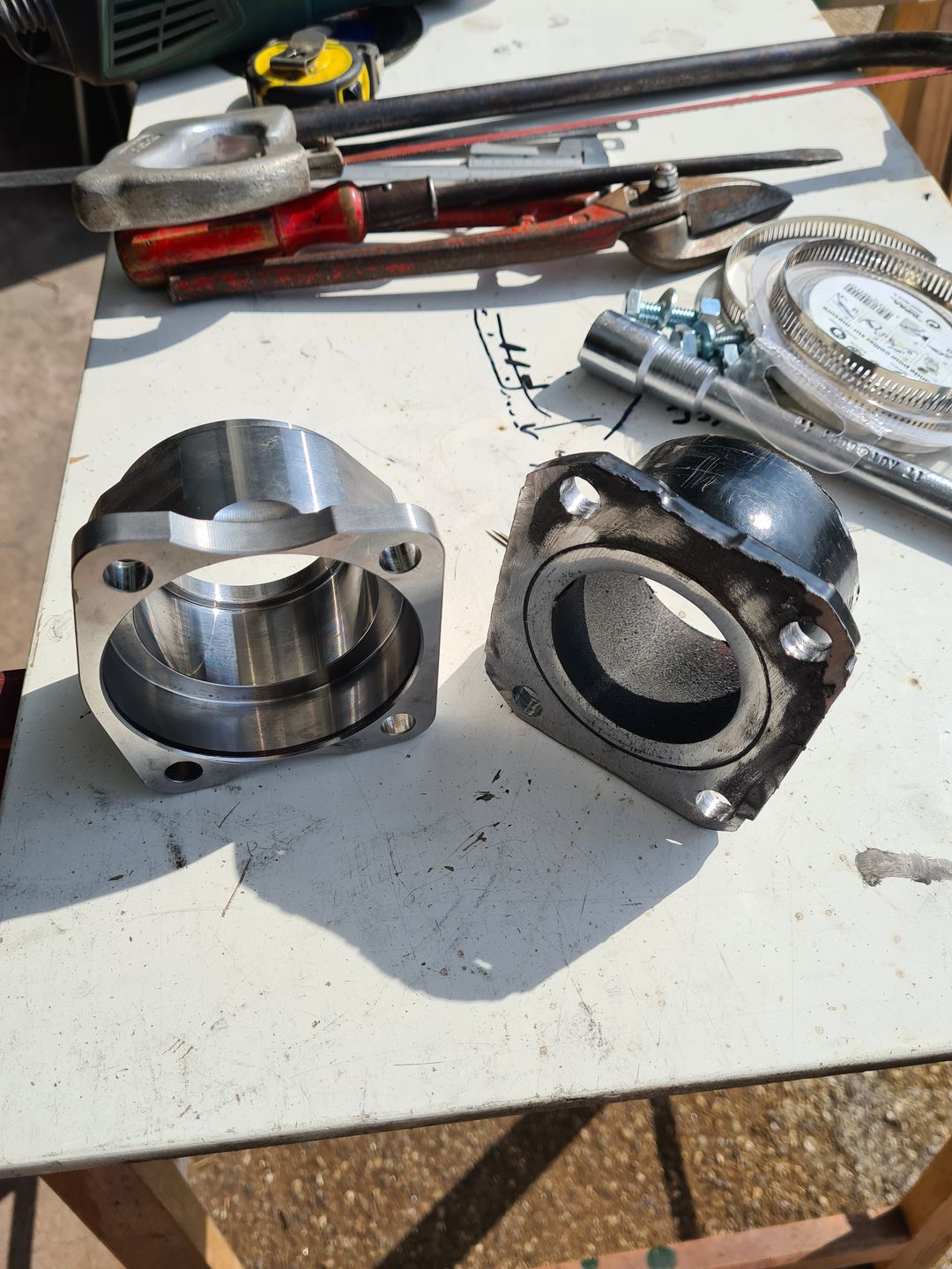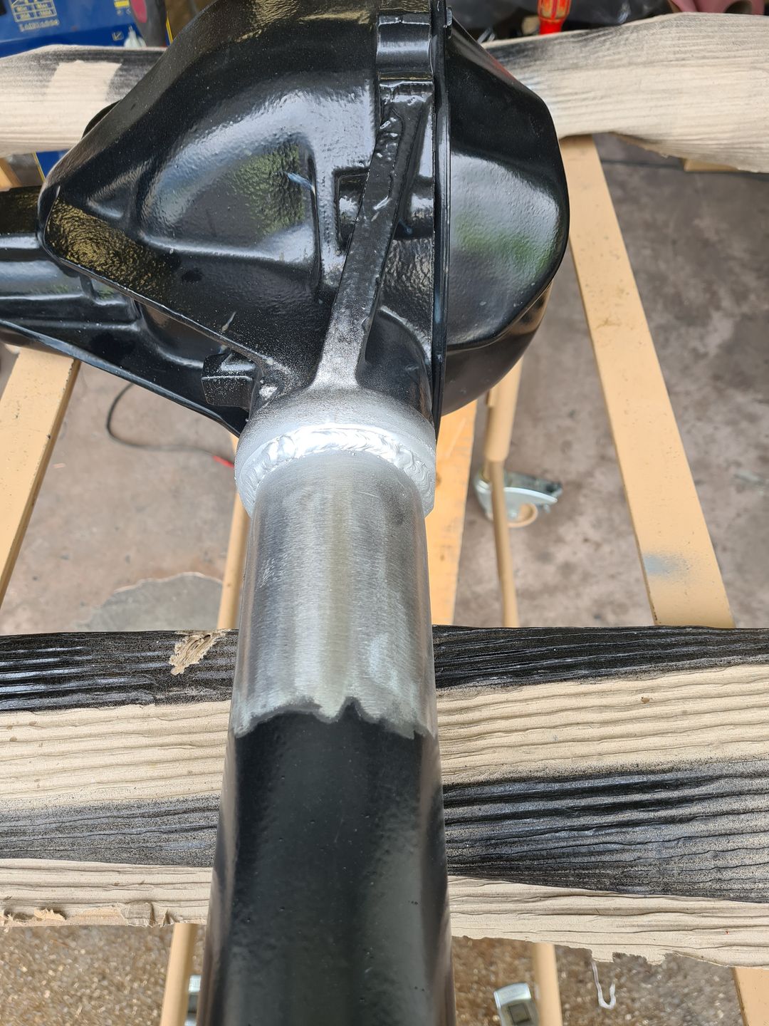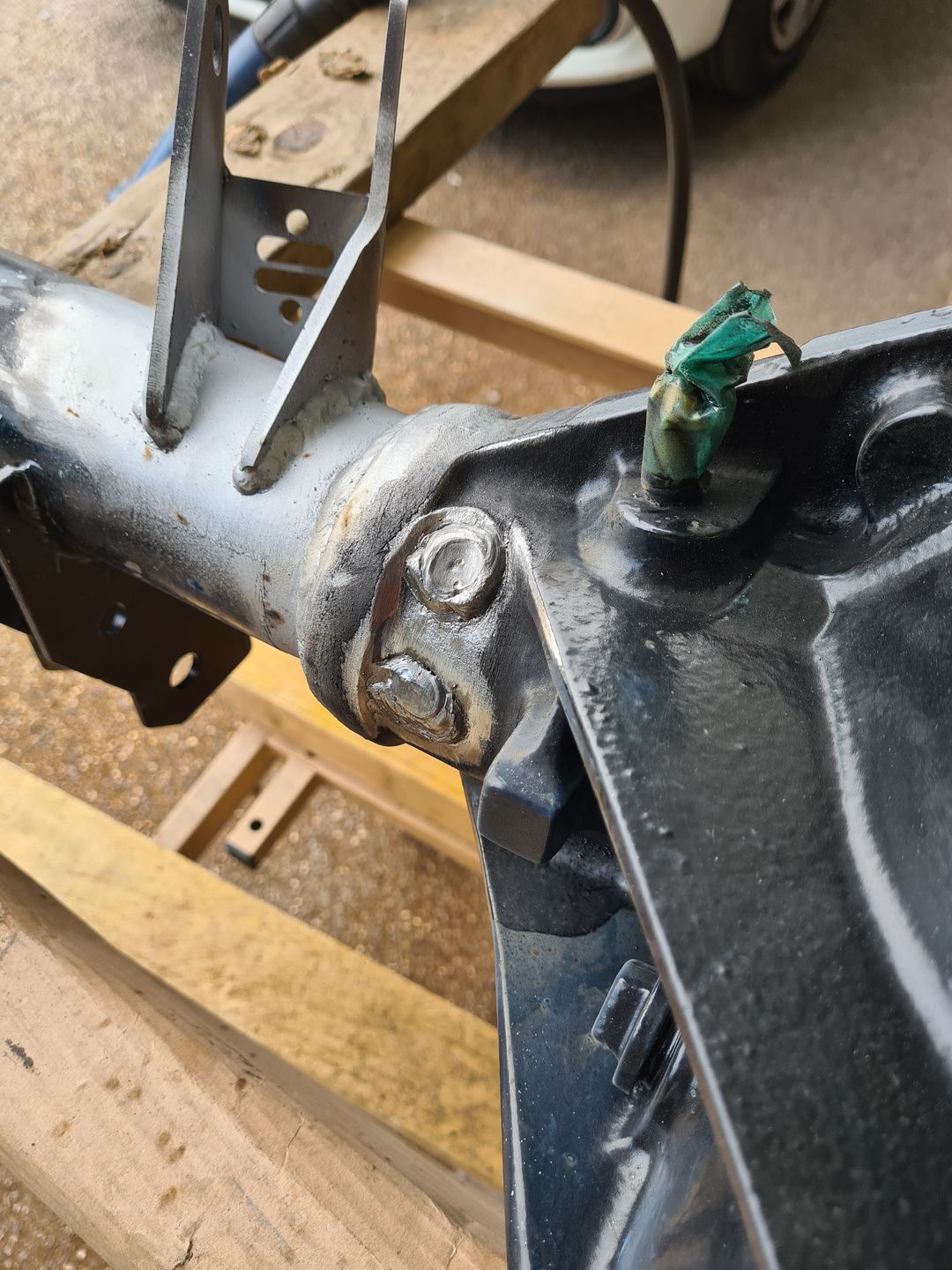 Une fois le nouveau support de roulement positionné on contrôle que tout est bien aligné et on pointe puis on soude le tout et c’est terminé. Si vous ne vous sentez pas de souder ces pièces ou vous n’avez pas confiance en vos soudures, je ne peux que vous conseiller de nouveau de faire appel à un pro!