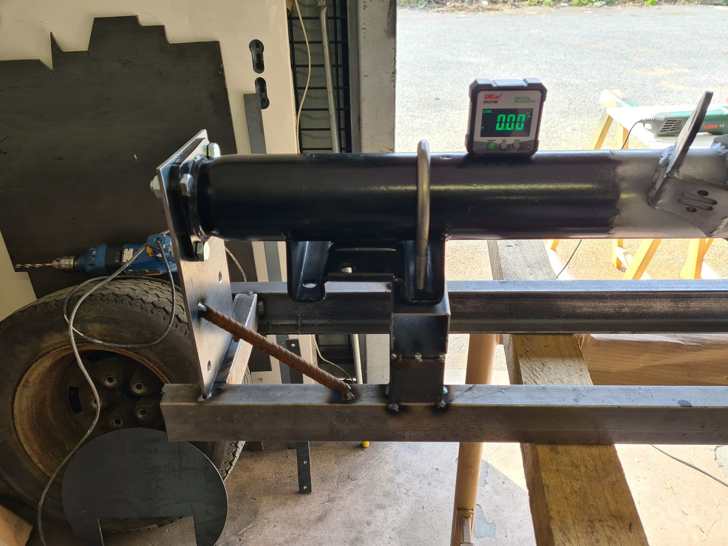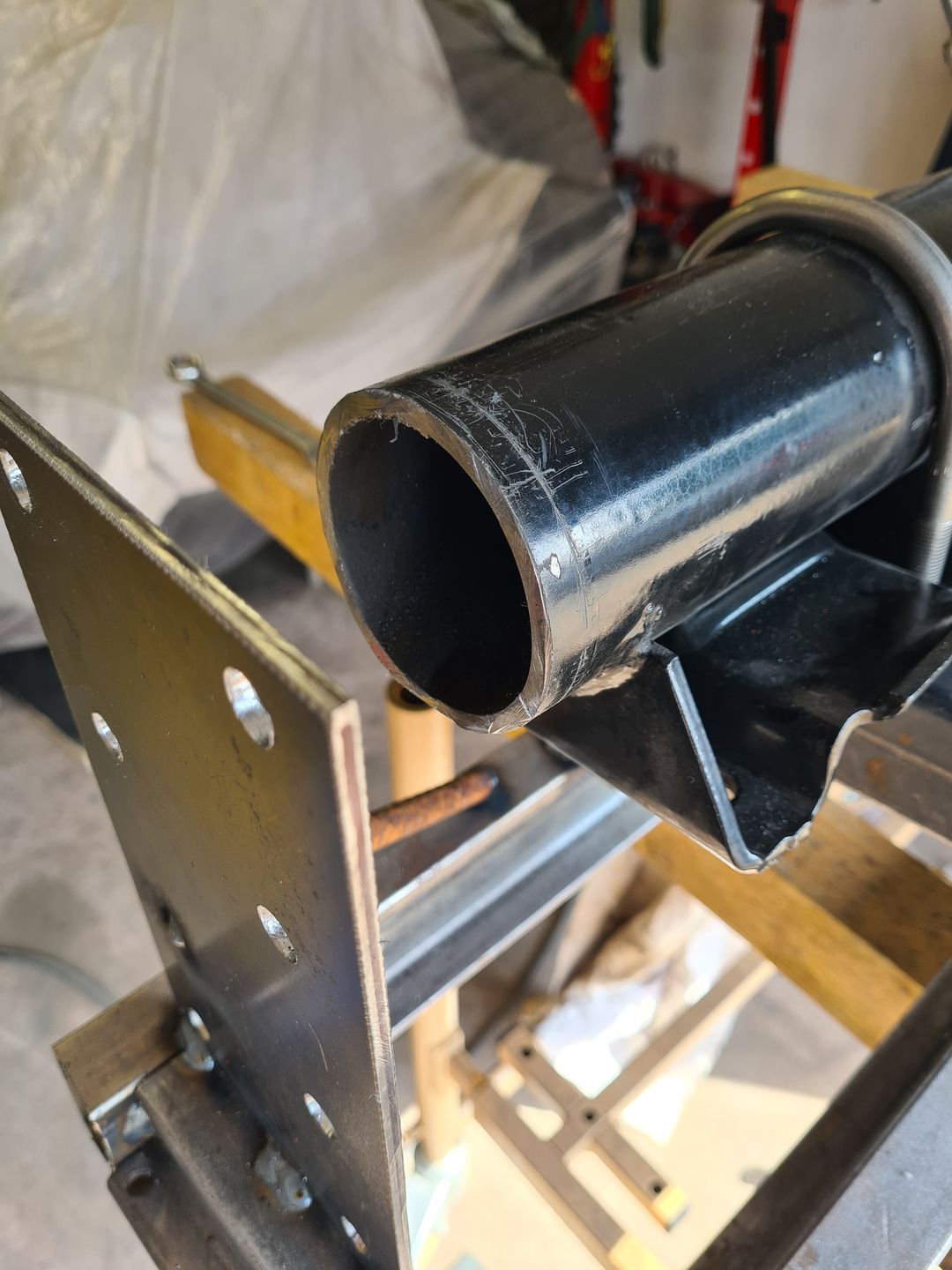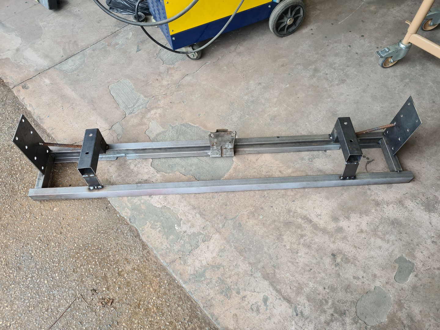 Première étape donc, découper les cages de roulement d’origine mais surtout il faudra dans la foulée fabriquer un support pour le corps du pont afin de bien le maintenir en position afin d’éviter les déformations lors des soudures. Le support sera fait aussi pour garder le bon positionnement des extrémités pour permettre de ressouder précisément et au même endroit. En effet, normalement il faut un outil spécifique pour ressouder ces nouveaux supports de roulements qui permet de tout aligner correctement mais celui-ci est onéreux et pour une seule utilisation j’ai estimé que je pourrais m’en passer.